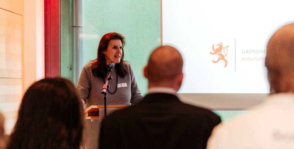 Nach der Begrüßung durch I.E. Sylvie Lucas gab Max Krecké, Project Support Officer – HealthTech bei Luxinnovation GIE, in einem Impulsvortrag spannende Einblicke in das luxemburgische HealthTech‑Ökosystem. Im Mittelpunkt des Abends standen offene Gespräche zu gemeinsamen Herausforderungen und Chancen im Bereich der digitalen Gesundheitsversorgung.