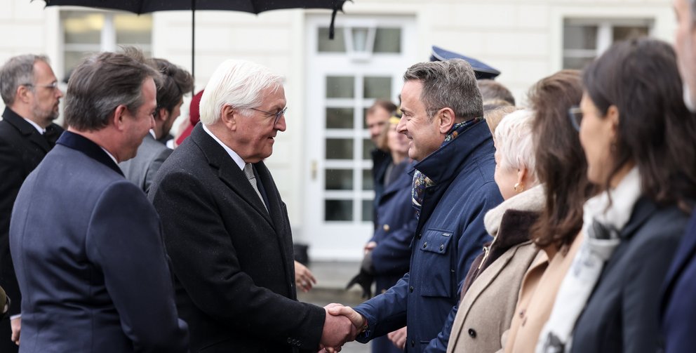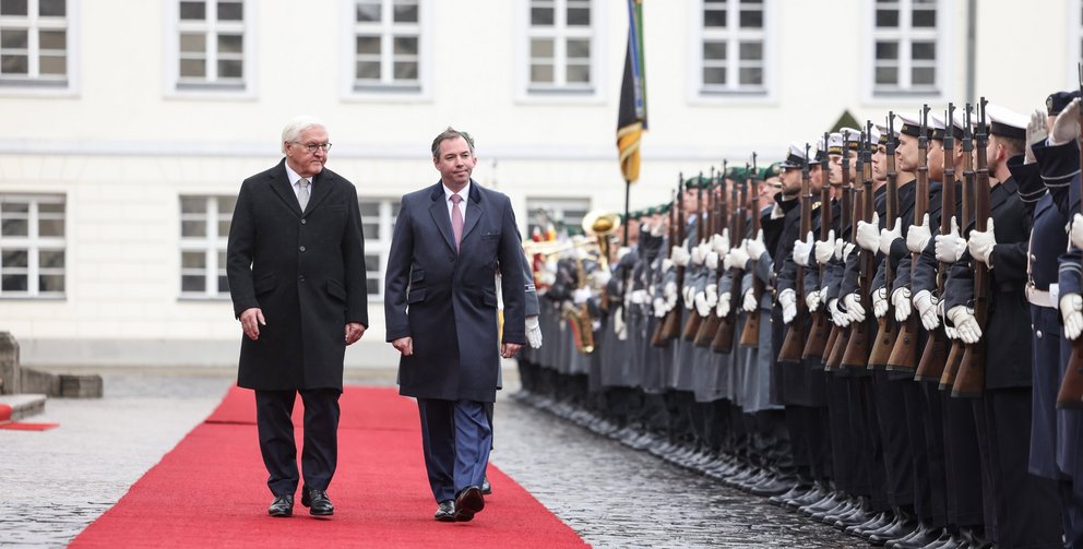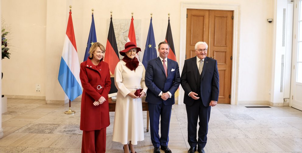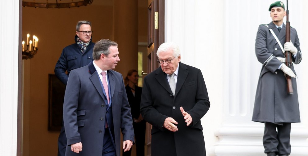 Das großherzogliche Paar und seine Delegation wurden am 27. Oktober 2025 im Schloss Bellevue in Berlin vom Präsidenten der Bundesrepublik Deutschland, Frank-Walter Steinmeier, und seiner Frau Elke Büdenbender offiziell empfangen.