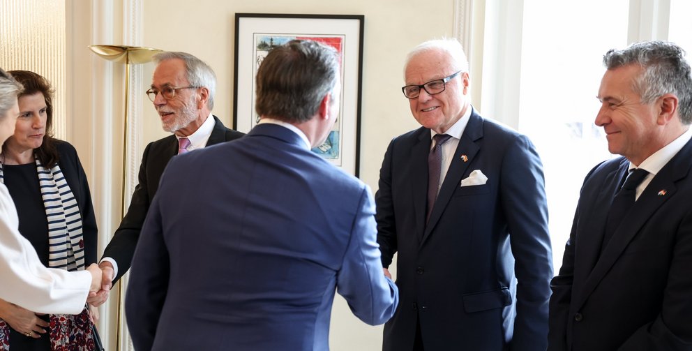 Im Anschluss an dieses Treffen nahmen S.K.H. der Großherzog und die Großherzogin sowie Minister Xavier Bettel an einem Mittagessen in der Residenz der Botschafterin des Großherzogtums Luxemburg in Berlin teil, an dem auch die Honorarkonsuln Luxemburgs in der Bundesrepublik Deutschland teilnahmen. Dieser gesellige Moment bot Gelegenheit, ihr Engagement für das Großherzogtum zu würdigen.